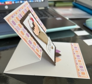 Check out this super cute card created with the Share A Milkshake bundle by Stampin Up®. This is an easel card. The scalloped front layer is propped up by the 3 hearts (center heart has dimensional) on the inside of the card. This stamp bundle has stamps to create a milkshake, sundae, and a die that makes a waffle cone. There's nothing like a cherry on top. This is just one of the great cards we will be creating at my March stamp classes.